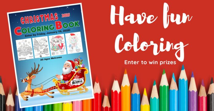 Let’s make this the most colorful and creative Christmas yet! Download a coloring page for your family, and share your finished artwork online with #ServeDailyColoring also tag the business and then turn it in to the location listed on the page. Let’s fill our community with joy, art, and holiday fun.