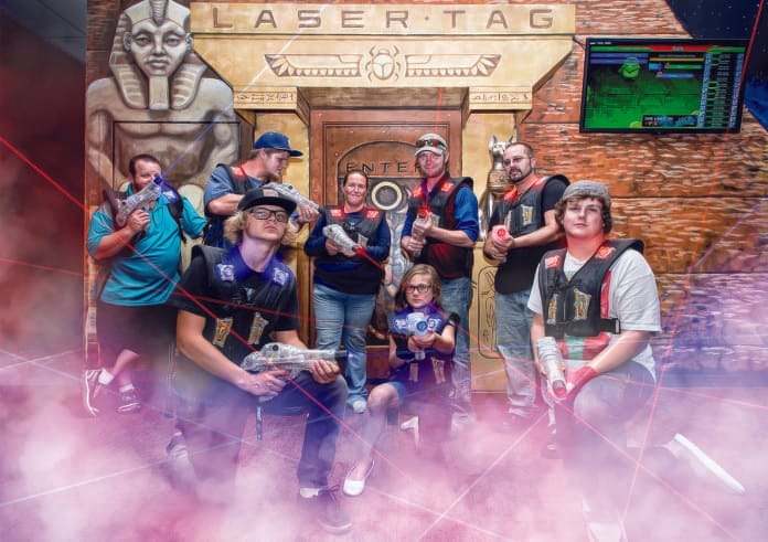 As you walk into South County Lanes, you may notice a set of doors that look like an entrance to an Egyptian pharaoh’s tomb. Raid an ancient Egyptian ruin with friends. Select a red or blue vest and get ready to have a blast shooting lasers to fame and glory. Be careful though, the ruins are full of crumbling stone walls, statues, flashing lights and fog and mummies are seen breaking through walls. Laser light shows move to the sound of musical scores. In addition, a variety of game options are available once you master the basic red vs. blue game. Be sure to ask about game options such as “Vampire,” where one player is given the role of vampire and everyone else is a peasant. The number of vampires increases as a peasant is hit enough times. The vampires win if they convert enough peasants, the peasants win if time runs out.