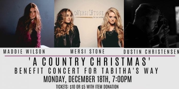 On Monday, December 18, from 7:00 p.m. to 9:00 p.m., three incredibly talented country acts will come together at Pleasant Grove Jr. High School to obtain critically needed items, volunteer service, and funds for a wonderful local food pantry with locations in American Fork and Spanish Fork. Tabitha’s Way provided over 2,000,000 meals for the needy in Utah this year. They strive to make “no hunger zones” in our communities where a surprising number of people live at or below the poverty line. This is a great opportunity to make a difference for our neighbors and to help Light the World.