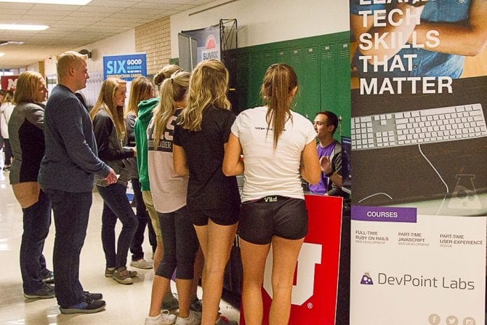 The halls of Payson High School were lined with tables for representatives of college and university options in the state of Utah with each discussing their particular institution of higher education. Trade schools and apprentice programs were also represented for much-needed craft jobs. All branches of the military were represented, except the U.S. Coast Guard, as a post-high school option. Several large businesses in our area were represented to share job and career opportunities with their business.
