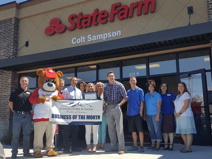 r Colt Sampson State Farm has been named the Business of the Month for May by the Spanish Fork Salem Area Chamber of Commerce.
