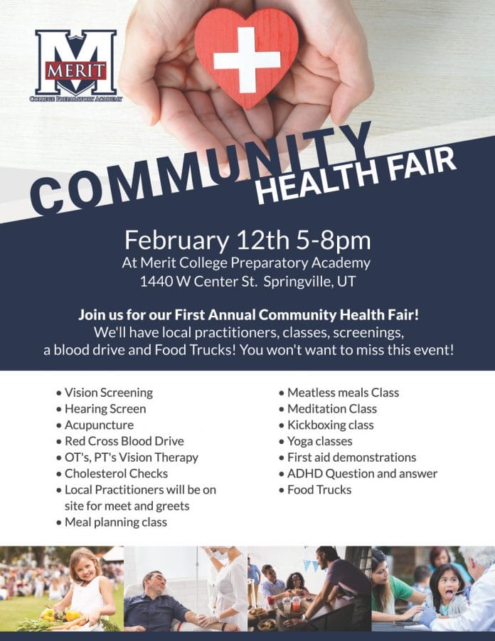 Merit Academy is hosting a community health fair on February 12 from 5:00-8:00 p.m.