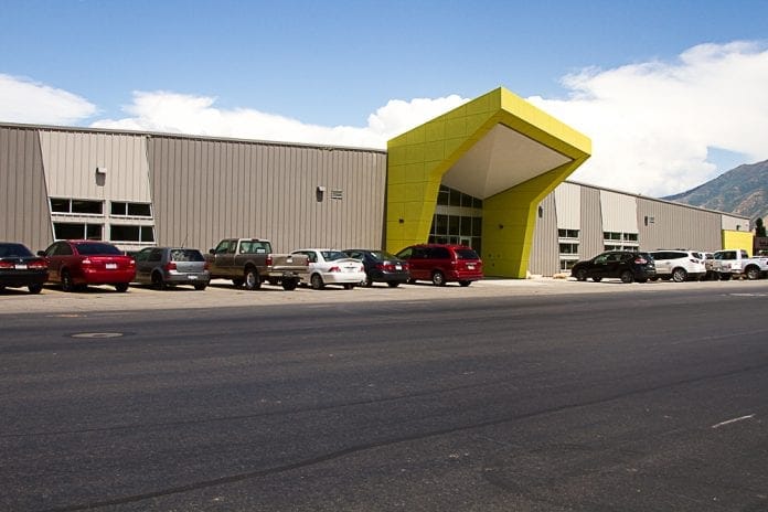 r The Nebo Peak Center in Salem, Utah is nothing like the high school any of us have previously attended. It is ultra modern and high tech all the way. It is located on 13 acres in a renovated 162,000 square foot prefab metal building which was previously used as a warehouse. It houses the Advanced Learning Center (ALC) formerly in Springville, an athletic field house, warehouse, and maintenance building for Nebo School District. The facility was dedicated August 21.