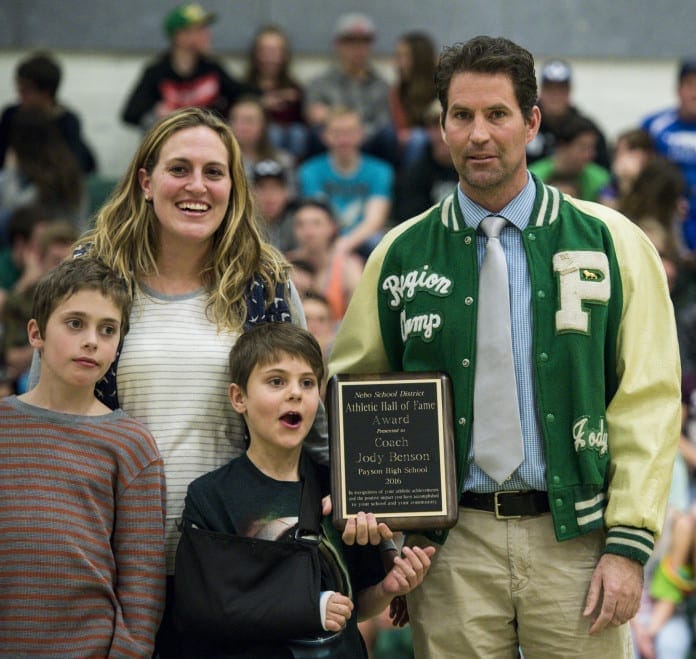 r Nebo School District inducted Jody Benson in the Nebo Athletic Hall of Fame in February at the Payson High School boys basketball game.