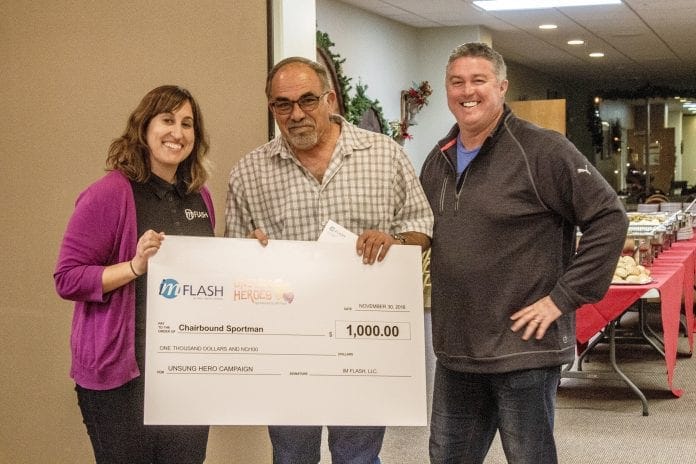 r During the December Chairbound Sportsman Holiday Dinner, the highlight of the evening was a special recognition and an award given to Payson resident Fred Barber. He was this year’s recipient of the “Unsung Heroes” award from IM Flash Technologies, a semiconductor manufacturing company in Lehi, Utah.