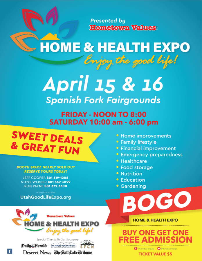 With that in mind, The Home & Health Expo, formerly know as The Good Life Expo, for its 21st year will be held at the Spanish Fork Fairgrounds on Friday and Saturday, April 15 and 16. The popular show will provide exhibits and demonstrations related to home and garden improvement, family health and nutrition, and hobbies and favorite pastimes.
