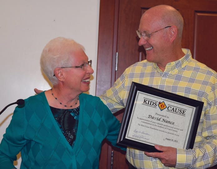 Kids Cause honored Dr. David Nance during the September meeting of the Nebo School District Board of Education for all his generous service to Nebo students. He graduated from Springville High School in 1976 and then served a mission for The Church of Jesus Christ of Latter-day Saints in South Korea. Dr. Nance attended and graduated from BYU and Creighton University, majoring in dentistry. He graduated in May of 1986 and returned to start his dental practice in his hometown of Springville. He has been in practice for almost 30 years.