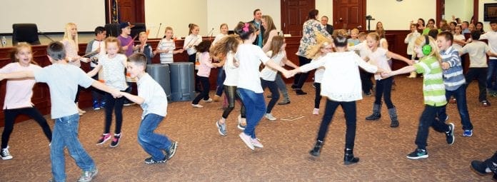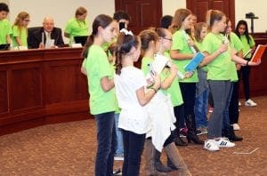 The Nebo School Board of Education were then enthralled with a combined fourth- through sixth-grade chime choir that is a new addition to Larsen Elementary this year.