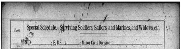 The 1890 Veterans Schedule is an index to individuals enumerated in the 1890 special census of Civil War Union veterans and widows of veterans available at Ancestry.com. Although this schedule was to be used to enumerate Union veterans, Confederate veterans and their widows were listed as well. The following information was recorded: names of surviving soldiers, sailors, and marines, or their widows; rank; name of regiment or vessel; date of enlistment; date of discharge, length of service; post office address; whether a disability incurred; and miscellaneous remarks. The Veterans schedules are often used as a partial substitute for the 1890 federal census, which was destroyed by fire.