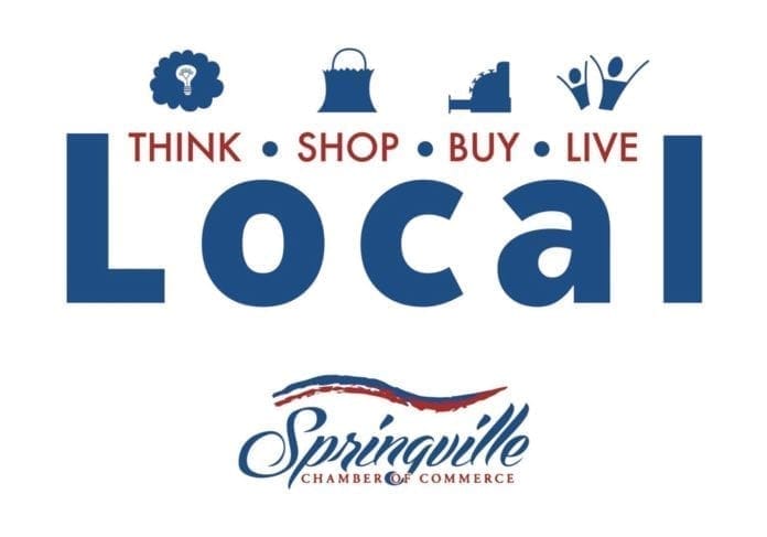 r Look for this logo as you travel around Springville and Mapleton. The businesses displaying this logo are proud members of the Springville Chamber of Commerce. Keep your money here in our economy where it benefits you the most. Local businesses are the ones that support you and your family by creating jobs, donating to many local causes and events and building our community.