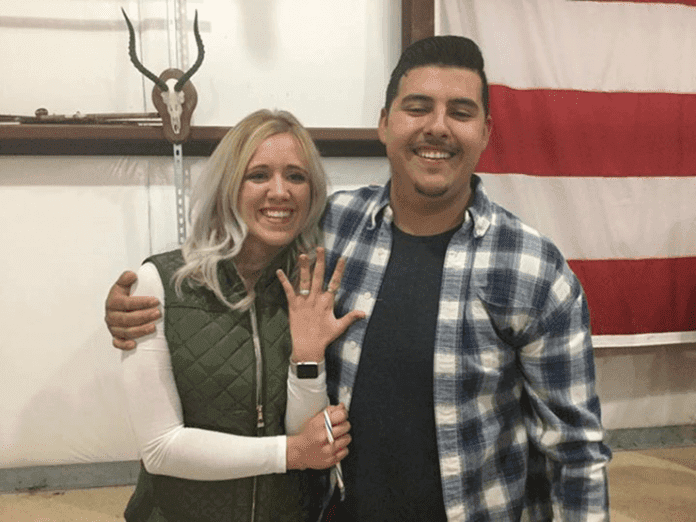 r On Dec. 21 at the Spanish Fork-Springville Airport, Santa brought a gift nobody was quite expecting. Andy Hartman and Cierra Memmott were called up to sit on Santa’s lap. From there, Santa, Cierra and Andy posed for a picture, which is when the engagement ring was slipped from Santa’s hand to Andy’s. After the pictures, Andy went down on one knee to ask Cierra to marry him. Cierra, in tears with a smile on her face, said yes. The newly engaged couple would like to thank Dr. Levi Berry at Canyon Foot and Ankle, Steve Wilson and Cierra’s mom and sister, Michelle and Jaycee Memmott, for helping make all of this happen and catching their special moment on camera.