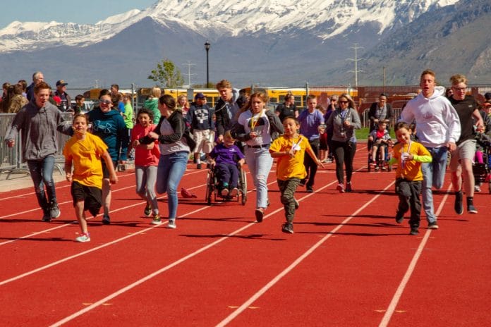 This year’s event brought 280 Special Needs students to the track meet. That is 7 busloads of students. Each Special Needs student is paired with one of 280 high school “buddies” to assist them with the various events. In addition, several parents were also on the field to witness the events their kids are involved in. Despite the wettest spring in many years the weather for this year’s event was perfect. The event is called the Super Stars Track and Field Day, and there are many stars at this event. It is about young people with mental and physical challenges experiencing achievement in things they don’t usually get to do. It is the excitement and smiles that we see from these young people thrilled with accomplishing simple things in a big world. The athlete and general education students at Maple Mountain High Schools are also stars in their efforts to assist the special education students in dealing with their capabilities and challenges. Remarkable bonding effort was seen between the buddy mentors and the special ed students. That was a rewarding by-product of the Super Stars Track Meet that will remain with everyone for years. David Boyack, who is now MMHS Athletic Director is also a star to be recognized and appreciated for originating and organizing the Super Stars Track Meet for the past 10 years.