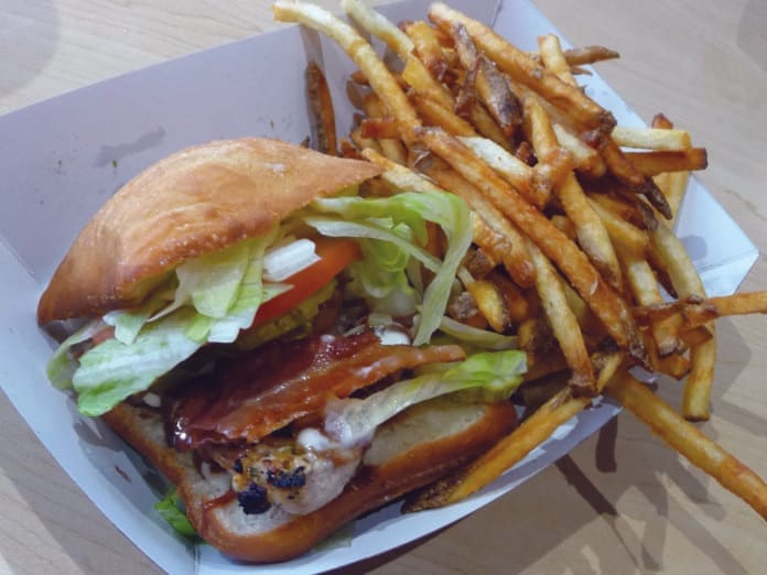 I got the Philly CheeseSteak and it was beyond yummy. It had big strips of ribeye steak, diced peppers, provolone cheese and some exceptional sauce. What made it really delicious was that it was served on a fresh, hot scone. The scones are soft with a crispy outside. And let’s talk about the meat. Everything is fresh and local from Springville Meat Company. The burgers are made with ground sirloin … you get the picture.