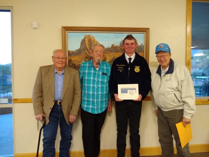 The Mt. Nebo Chapter of the Sons of Utah Pioneers (SUP) recently awarded scholarships to chosen members of the Future Farmers of America (FFA). One $500 scholarship was awarded to Tucker Robertson from Salem Hills High.Â