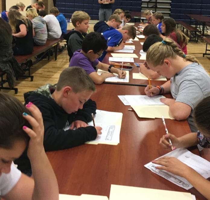 r In May, students from five different elementary schools competed in the first ever Nebo District Mathlete Olympiad. The event was held at Maple Ridge Elementary with students from Sierra Bonita, Barnett, Westside, and Sage Creek. Top performing math students from these schools were given 10 complex math problems to solve in a 30 minute time frame. Students were judged on accuracy (number correct) and time (how quickly they solved the problems). All students who competed were given a certificate and Mathlete T-shirt. It was a fun event for all involved.