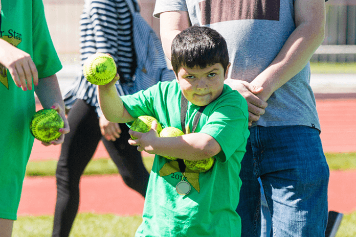 Each special needs student was teamed up with a high school student to help them through the events. Nine track and field events were simultaneously conducted for the young special needs athletes.