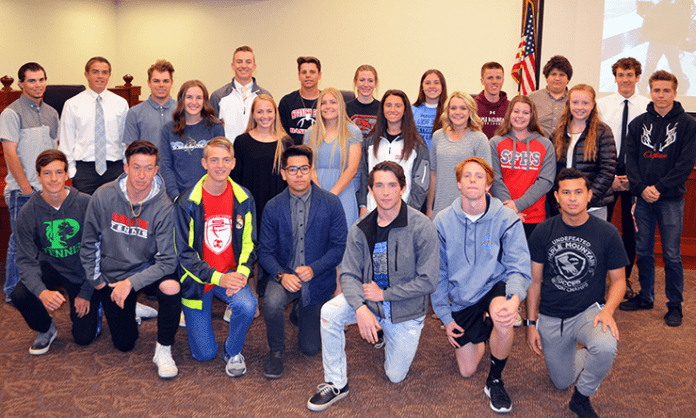 Held in the boardroom at the Nebo School District offices, the academy included captains from each spring sport: baseball, softball, boys and girls track and field, boys soccer, girls golf and boys tennis. All of Nebo district’s junior high and high schools were represented including Springville High School, Maple Mountain High School, Spanish Fork High School, Salem Hills High School, Payson High School, Springville Junior High School, Mapleton Junior High School, Diamond Fork Junior High School, Spanish Fork Junior High School, Salem Junior High School, Mt. Nebo Junior High School, and Payson Junior High School.