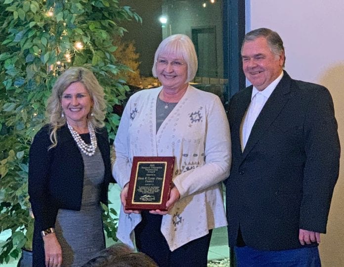Nebo School District honored Doug and Carol Ford, owners of Mountain Country Foods, with the 2018 Business Educator Partnership Award at the recent Spanish Fork Salem Area Chamber banquet in January 2019.