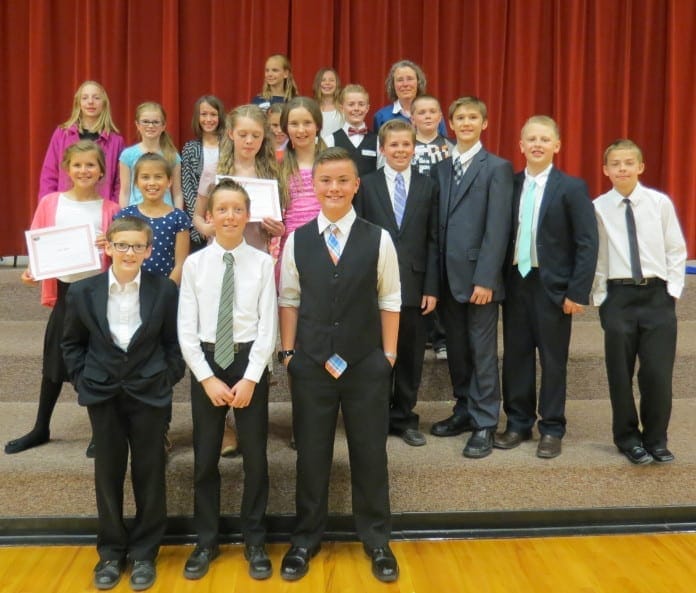 Speaker Awards: Hobble Creek: Shyler Mecham, Nicole Cragun, Paityn Bird, Emma Compas, Chloe Ekker, Anna Sneddon, Avery Miller, Grace Carter, Brooklyn Asbell, Savanah Butler, Mia Anderson, Ashleigh Mousser, Libby Anderson, Rie Briggs, Ben Wheeler, Jordan Jenkins and Brody Colton. Mapleton: Isaac Woolford, Tate Hickman, Aliya Cook, John Henderson and Isaac Jacobson. Brockbank: Ethan Benson, Saylor Corona, Sarah Mockett, Andrew Fox, Cheyenne Terry, Gentry Wolf, Jesse Shepherd, Kyson Pulham, Peyton ThorperRees: London Leathers, Pieper Duvall and Lizzie Draper.