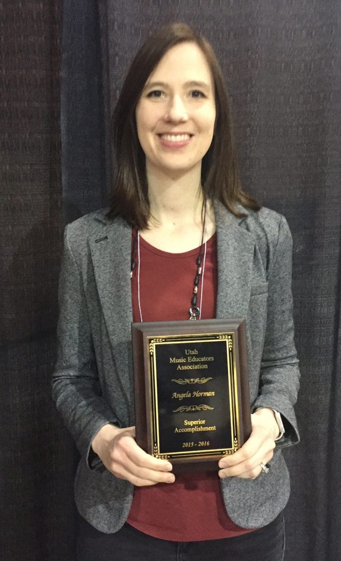 Angela was recognized by the Utah Music Educators Association in 2017 with the Superior Accomplishment Award. She is currently serving as the UMEA Junior High Orchestra Vice President-Elect.