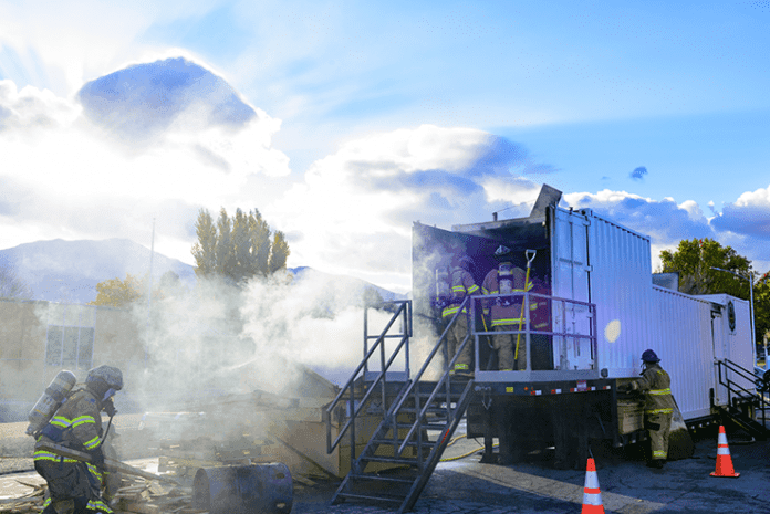 r By Steve ParsonsrThe Payson City Fire Department has completed its annual training in the “hot house.” The Utah Fire and Rescue Academy (https://www.uvu.edu/ufra/) conducts the training all across the state. The flashover trailer they bring is meant to help emergency responders witness fire and flashover behavior. The converted shipping container reaches temperatures well over 300 degrees inside during the roughly 30-minute stay for the trainees. Flashover occurs usually between 900 and 1200 degrees Fahrenheit and is not survivable for more than a few seconds even with protective gear. That is why this type of training is so important toward the goal of saving lives. Flashover is when temperatures reach a high enough point that secondary gases and virtually the whole room suddenly are engulfed in flames.