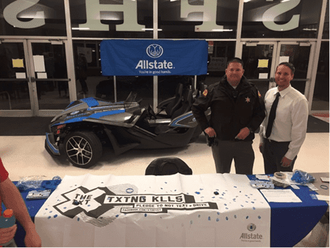 r On Feb. 17, students from Spanish Fork High School took a pledge to put their cell phones down and focus on the road as part of Allstate’s national “X the TXT” campaign. The Allstate Foundation partnered with Health World and the Utah Highway Patrol to urge students to stay distraction-free behind the wheel and raise awareness of the dangers of texting and driving.