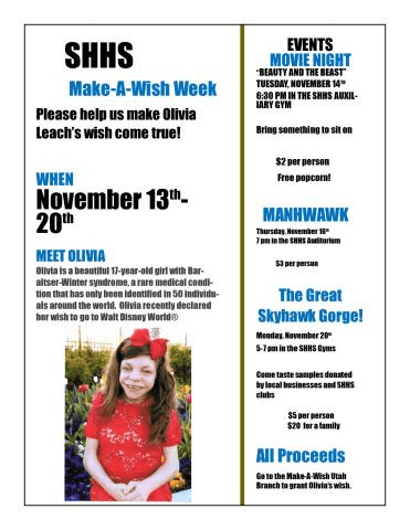 This year, the 10th Make-A-Wish week, there will be a Salem Hills Alumni booth at the Gorge.