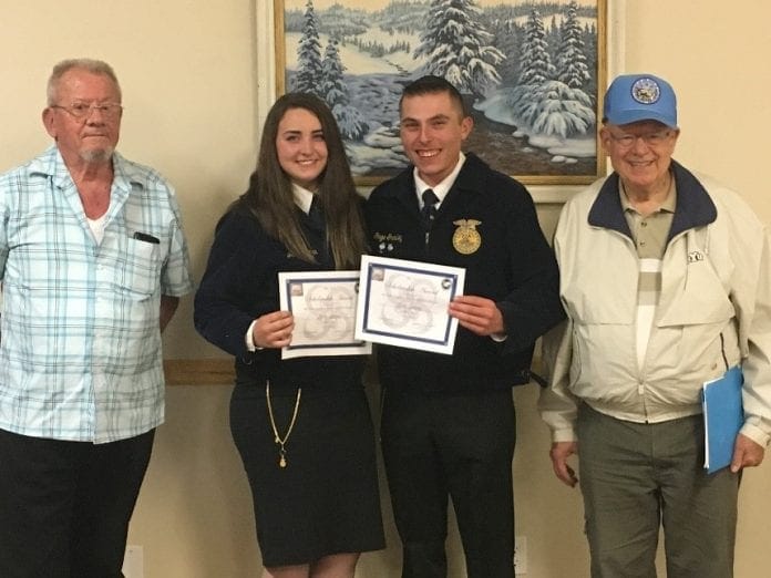 On May 17, the Mt. Nebo Chapter of the Sons of Utah Pioneers presented scholarships to selected FFA students at Payson High School and Salem Hills High School.