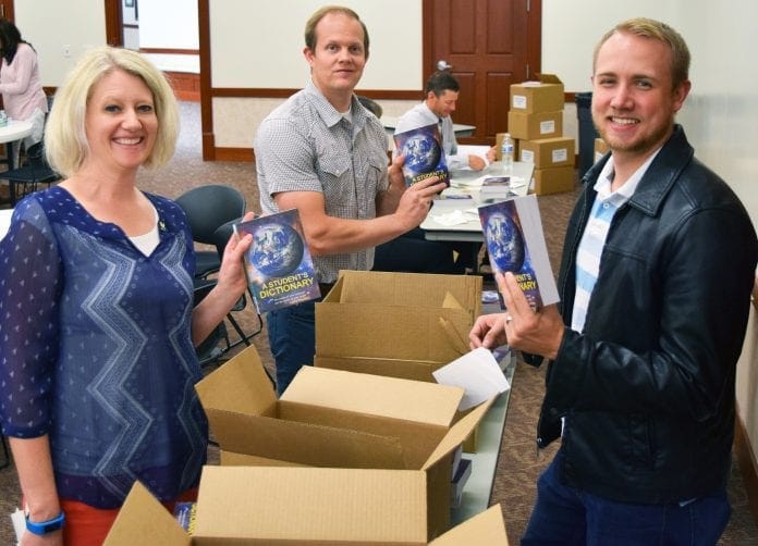 With the help and support of local financial institutions, the Spanish Fork Rotary donated almost 2000 dictionaries to each third-grade classroom in 21 schools in Nebo School District.