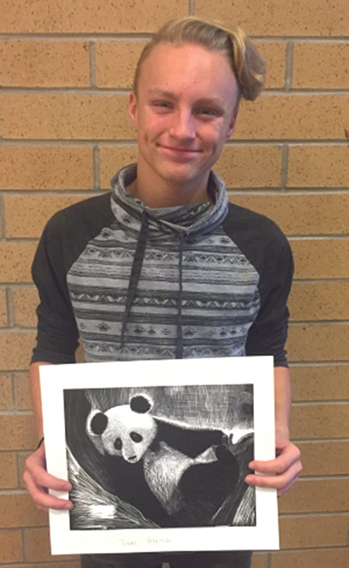 Ninth-grade student Traer Petersen said, “I learned to push what I could do. I didn’t know I could do it that good. The content of my piece is endangered animals. I want to help them, but I don’t know how. Now, I know that we should try not to burn as much fossil fuels and keep pollution out of the air.”