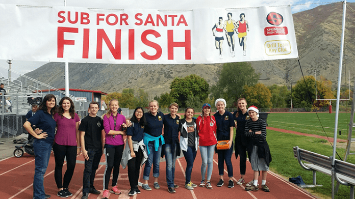 r On Oct. 15, Springville High School was the scene of the fourth annual Sub for Santa 5K Run sponsored by the Kiwanis Club of Springville. More than 160 runners and walkers ranging in age from 7 to 75 gathered in the crisp morning air at the starting line in the stadium. Adding to the crowd were another 25 volunteers from the high school’s Key Club, the Kiwanis Club and their families.