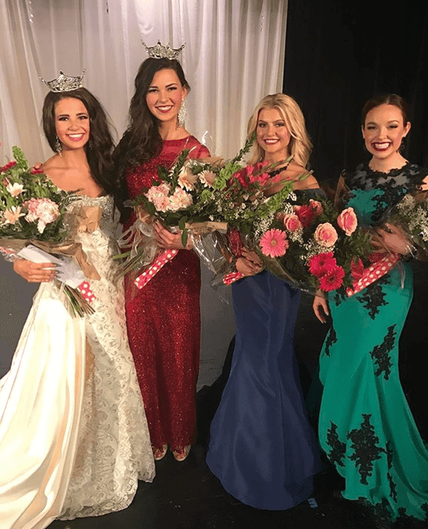 r The Miss Springville/Mapleton and Miss Hobble Creek 2017 pageant was held March 25 at Springville High School. The year’s theme was “She Sets the City on Fire.” Nine talented contestants competed in the pageant, which was judged on the categories of personal interview, swimsuit, talent, evening gown and on-stage interview. The winners of the pageant were, from left: Miss Hobble Creek 2017 Addison Black, Miss Springville/Mapleton Miriam Hall, First Attendant Austri Ekker and Second Attendant Mary Nelson.