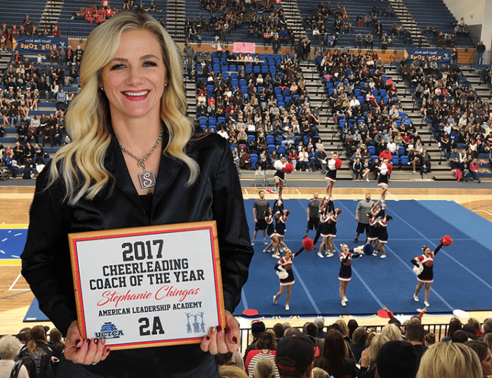 Chingas has been the head cheer coach at American Leadership Academy since 2009. She began working there as a teacher’s aide when the school opened in 2005.
