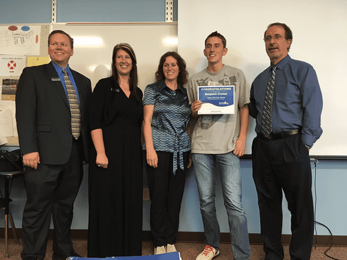 r Salem Hills High School 12th-grader Benjamin Cromar received a $100 scholarship savings account as a regional winner of the winter drawing through Zions Bank’s Pays for A’s program.