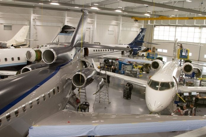 The new Duncan Aviation facility is a 70+ million-dollar investment that is a huge complex of hangars for business jet inspection, repair, modification and painting. The complex which is still under construction will have 275,000 square feet of inside space when completed.