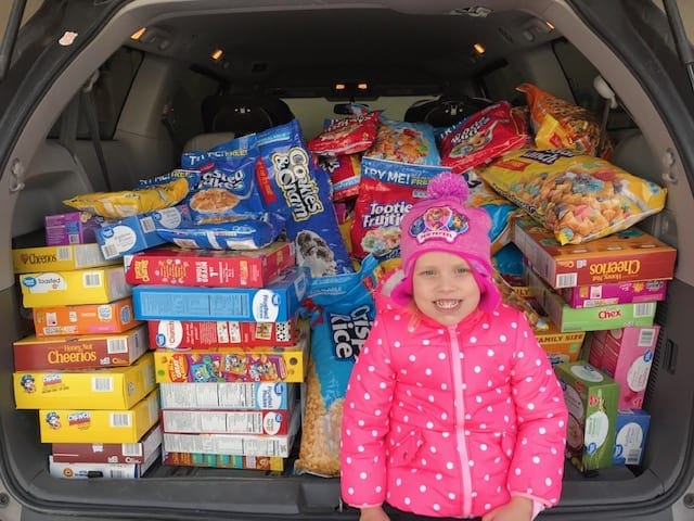 Kate my oldest daughter who turned five year’s old in January celebrated her birthday month by giving back to our community. I contacted Tabitha’s Way in Spanish Fork our local food pantry and they told me they needed breakfast cereal.