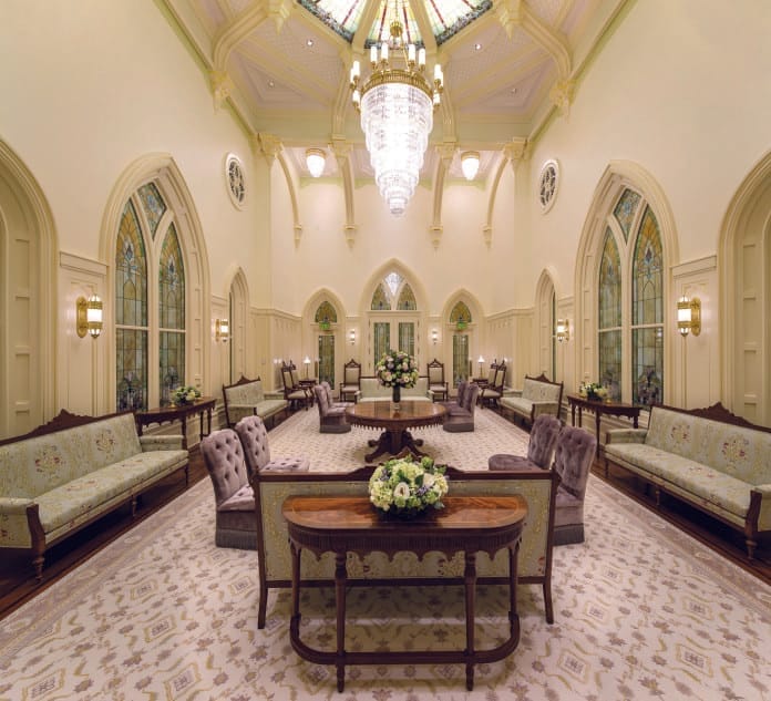 The two floors inside the former tabernacle measure about 11,000 square feet each and house the instruction rooms, the celestial room and sealing rooms for weddings. Wilson said as of the date of the media tour, 500 weddings had been scheduled at the new temple.