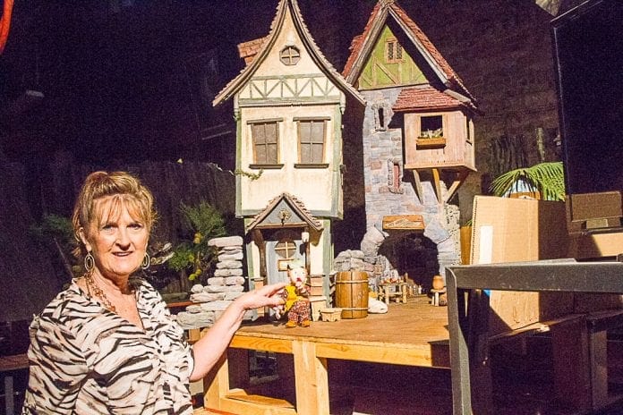 r The 91-year-old Rivoli Theater in Springville has taken a new turn in life and will be playing an interesting role in Art City’s history. Last year Melissa Cannon leased the building from the city of Springville with plans to bring new life to the old theater. That new life turns out to be miniature people and prehistoric type creatures for the production of a full-length stop-motion animated family movie, Saurus City. This movie is written and directed by Nathan Smith and is the story of tiny people who live on the back of a dinosaur. The Rivoli Theater has become a motion picture studio.