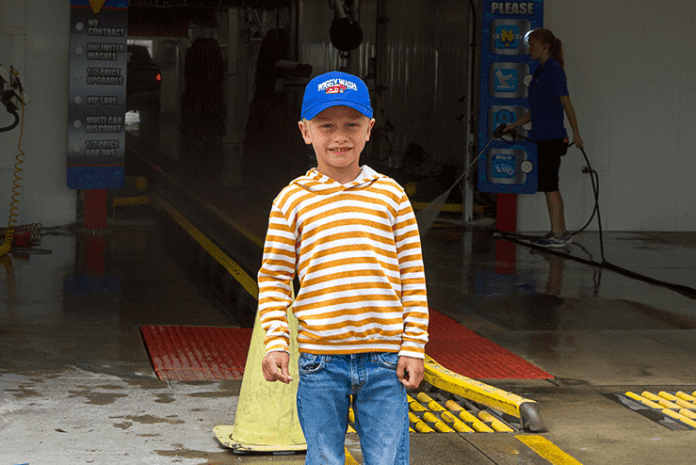 William visited the Wiggy Wash car wash in Springville about a year and a half ago, and he loved to watch the cars and trucks go through the wash tunnel. His family continued to take him to Wiggy Wash several times a week and he fell in love with the business. The folks at the car wash thought he was neat little guy and with supervision let him direct traffic into the wash tunnel.