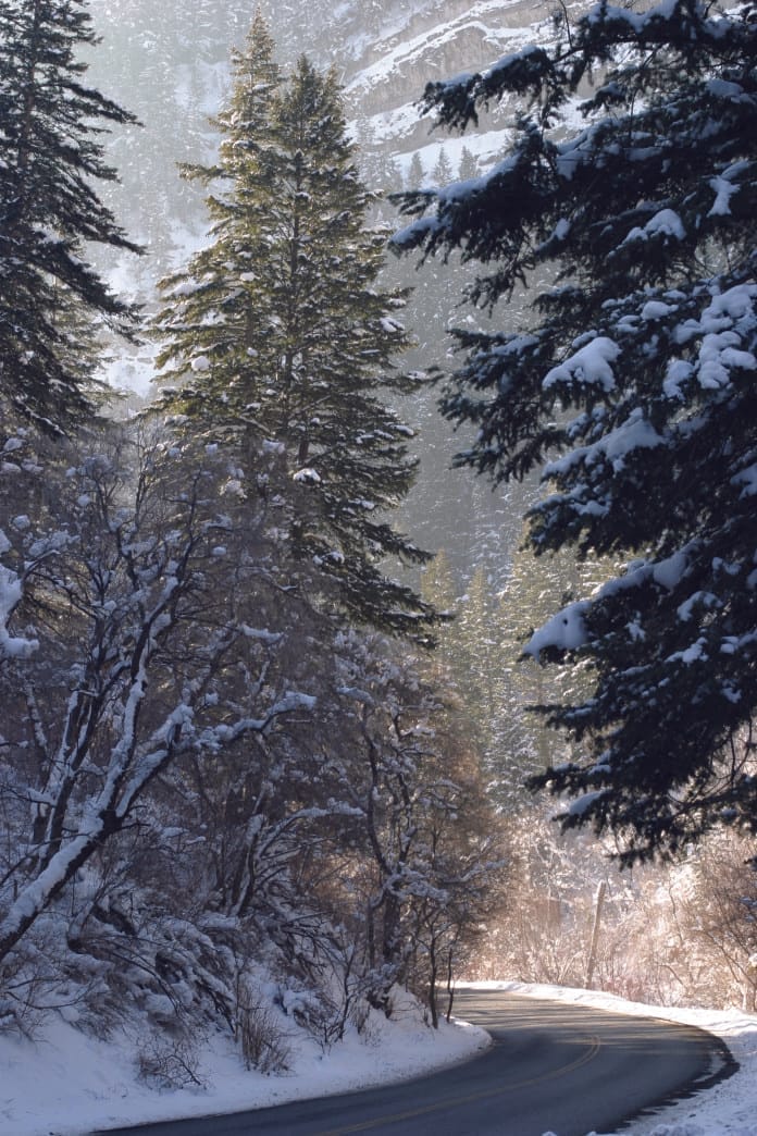A few years back, I was making a morning drive on a local mountain road when I came around a curve and was blessed with a view of a wonderful tree. The fresh snow was clinging to branches and the morning sun provided back lighting to accent the tree in a golden glow. I got out the camera to capture the special moment. I knew as the sun rose in the sky the image would become less dramatic and the magic moment would shortly be gone.