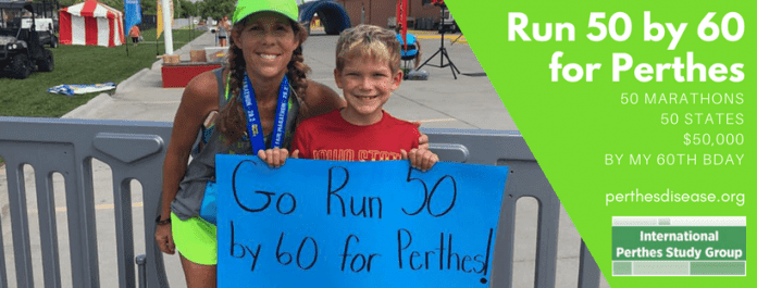 Michele says, “We were blessed – we had a wonderful orthopedic surgeon and we had very good insurance. I stayed home and didn’t have to work. Many families don’t have it so good. They don’t have access to doctors that understand Perthes, they may not have good insurance, and they might have either two working parents or be a single-parent home. One of the reasons I run is for those families. So they don’t feel so alone. So they know there is a group of physicians from around that world that understand Perthes and are constantly re-evaluating treatment for better outcomes. So that someday the cause of Perthes will be discovered and a cure can be found.”