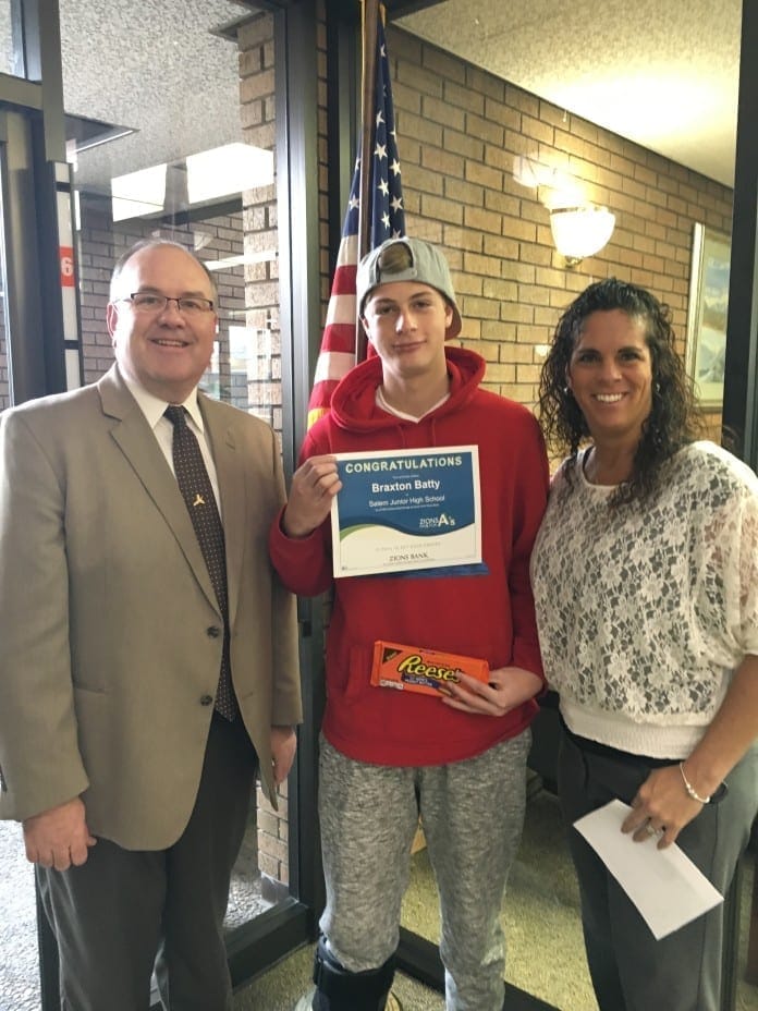 Salem Junior High School ninth-grader Braxton Beatty has received a $100 scholarship savings account after being named a regional winner of the winter drawing held by Zions Bank’s Pays for A’s program.