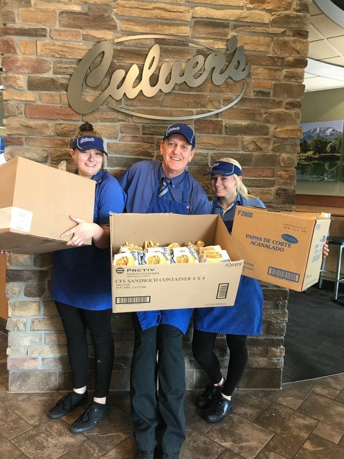 Though initially there was no response, Culver’s owner Monty Hedin said the message was shared around on social media and on Saturday a representative of the fire crews called. Arrangements were made for the crew to come in and on Saturday night Culver’s fed an entire crew of 125 firefighters in 2 shifts.