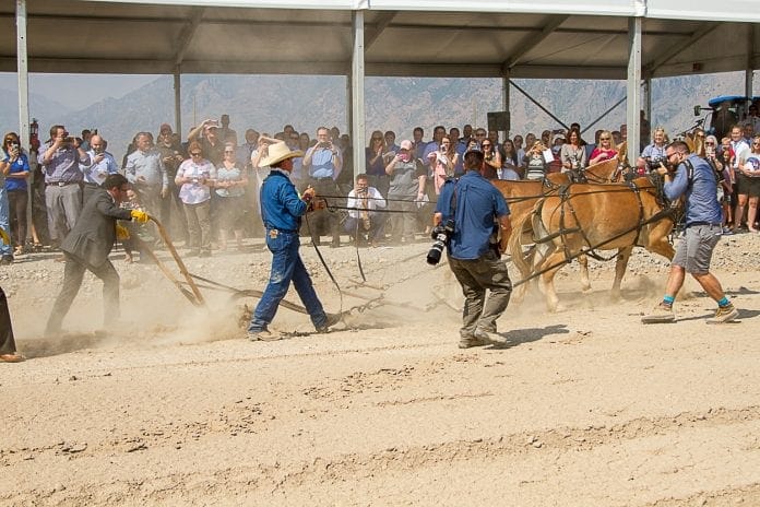r It was quite a celebration that was held for the groundbreaking for the construction of the new $150 million Spanish Fork Hospital on August 13, 2018. Unlike any other major construction groundbreaking, the local dignitaries did not use shovels, they used mule and horse-drawn plows and scrapers. This was the idea of Wayne Anderson, former Mayor of Spanish Fork, and others, months ago when planning for the ceremony was first discussed. The idea was to reflect our pioneer and agricultural heritage.