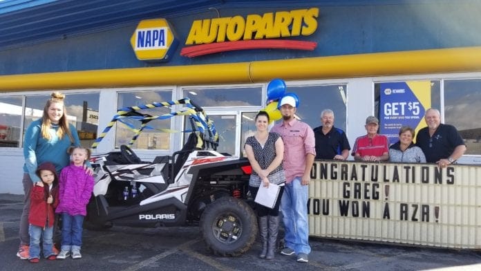 r A Spanish Fork man won and was rewarded for his loyalty to NAPA Auto Parts on Friday, October 5 when he was handed the keys to a brand new 2018 Polaris RZR 900 ATV.