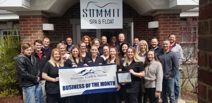 r By Katrina LongrSummit Spa & Float in Spanish Fork was just voted as April Business of the Month for the Spanish Fork Salem Chamber of Commerce and named as the #3 Day Spa in Utah County in the Daily Herald’s annual Best Of Utah Valley contest.