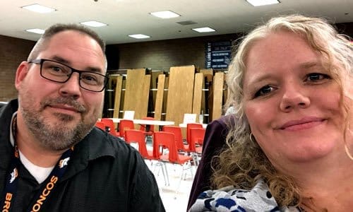 Kathy’s response, “I love it, though I’m not sure that Dave always does. I think I drive him crazy sometimes because I have a tendency to share a lot more about our family than he does. Part of that is because the content that I teach. The fact that we teach the same students allows us to support each other, and work together to figure out the best ways to reach and teach our students. It’s great that we can carpool to school together, though if we ever have to drive different vehicles to school for any reason, people assume we are fighting.”