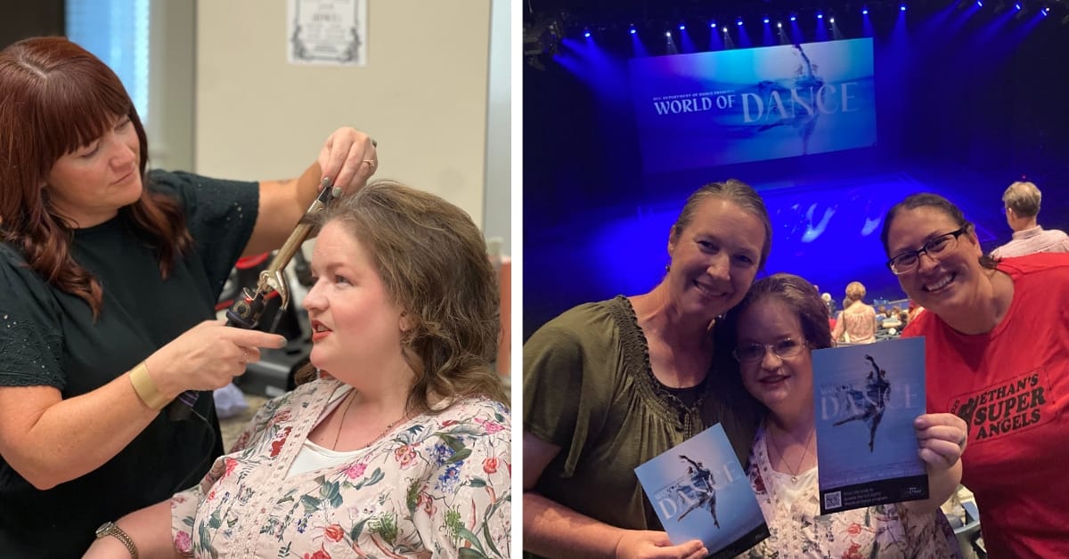 “This was so fun because we were all able to be a part of it,” Sorensen said. “We went shopping with her on Friday and picked out a cute outfit for her. We went to a few different stores. She wanted a pink dress with pockets, which was hard to find. We didn’t find any pockets, but we found one that she looks beautiful in. Then on Saturday morning, we had our hair stylist come in and do her hair, and then one of our activities assistants did her makeup. And then she and a friend went out to lunch and then they met up with another person who took her to the actual World of Dance performance.”