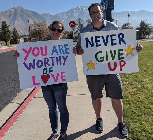 He put his hand down, held up his head and got a smile on his face. His whole countenance changed. It was amazing! I then walked over and joined Chris at the corner he was at. We held our signs out for the oncoming traffic driving down the road to see.