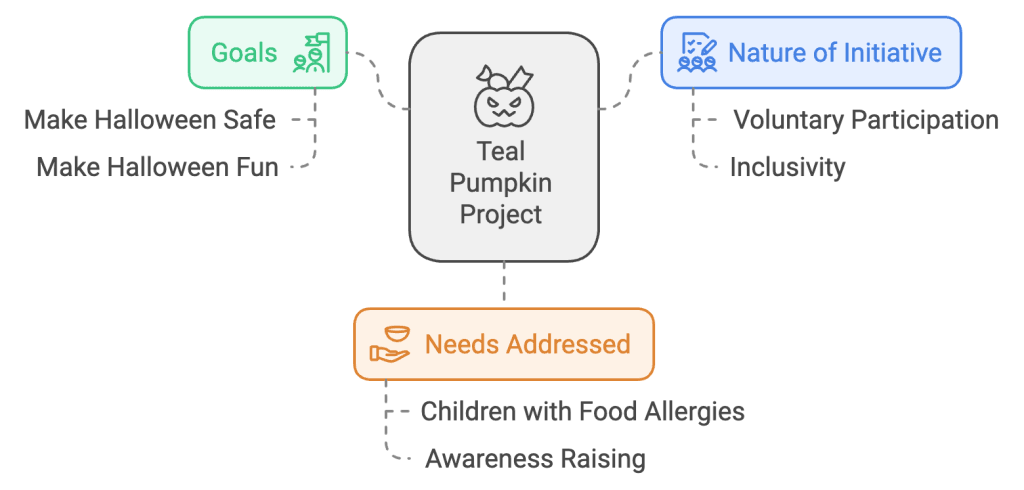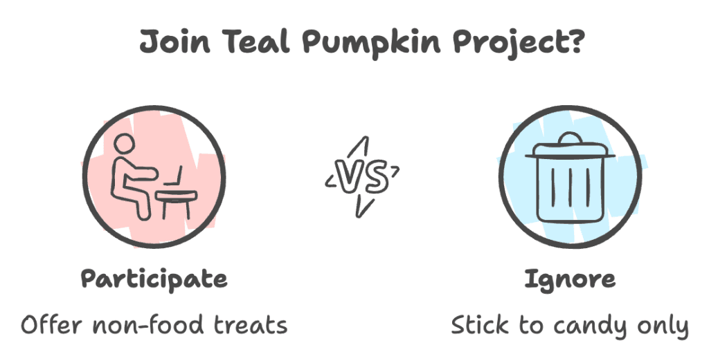Halloween has long been an intensely food-focused holiday, and there’s nothing wrong with that. The Teal Pumpkin Project doesn’t intend to exclude candy from anyone’s beloved traditions. It simply encourages families to offer safe alternatives so that kids with allergies can still join in the fun.